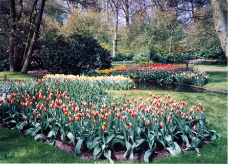 70 acre park filled with 6 million bulbs, mostly tulips and hyacinths,