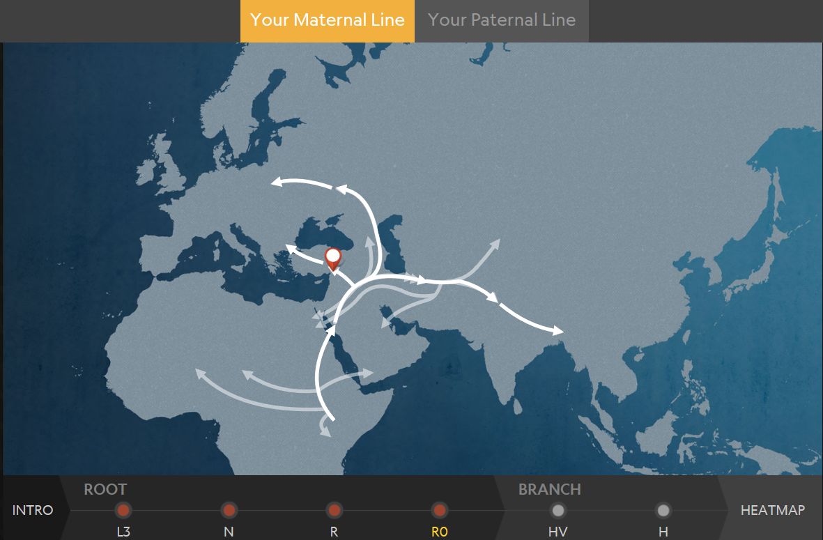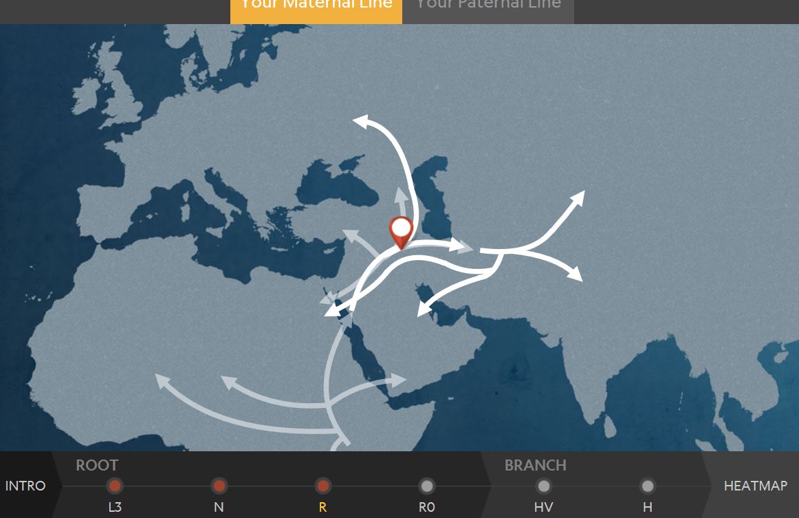 Does this mean you're related to people in the areas highlighted on your map? Distantly, yes! We are all connected through our ancient ancestry. In order for us to learn more ancestry information about where haplogroups settled in more recent times, please choose to contribute your results to science (check the checkbox during Login or from the Account Settings tab of your Profile), and fill out your ancestry information in the Profile section of the site. Also be sure to tell your own story in the Our Story section.