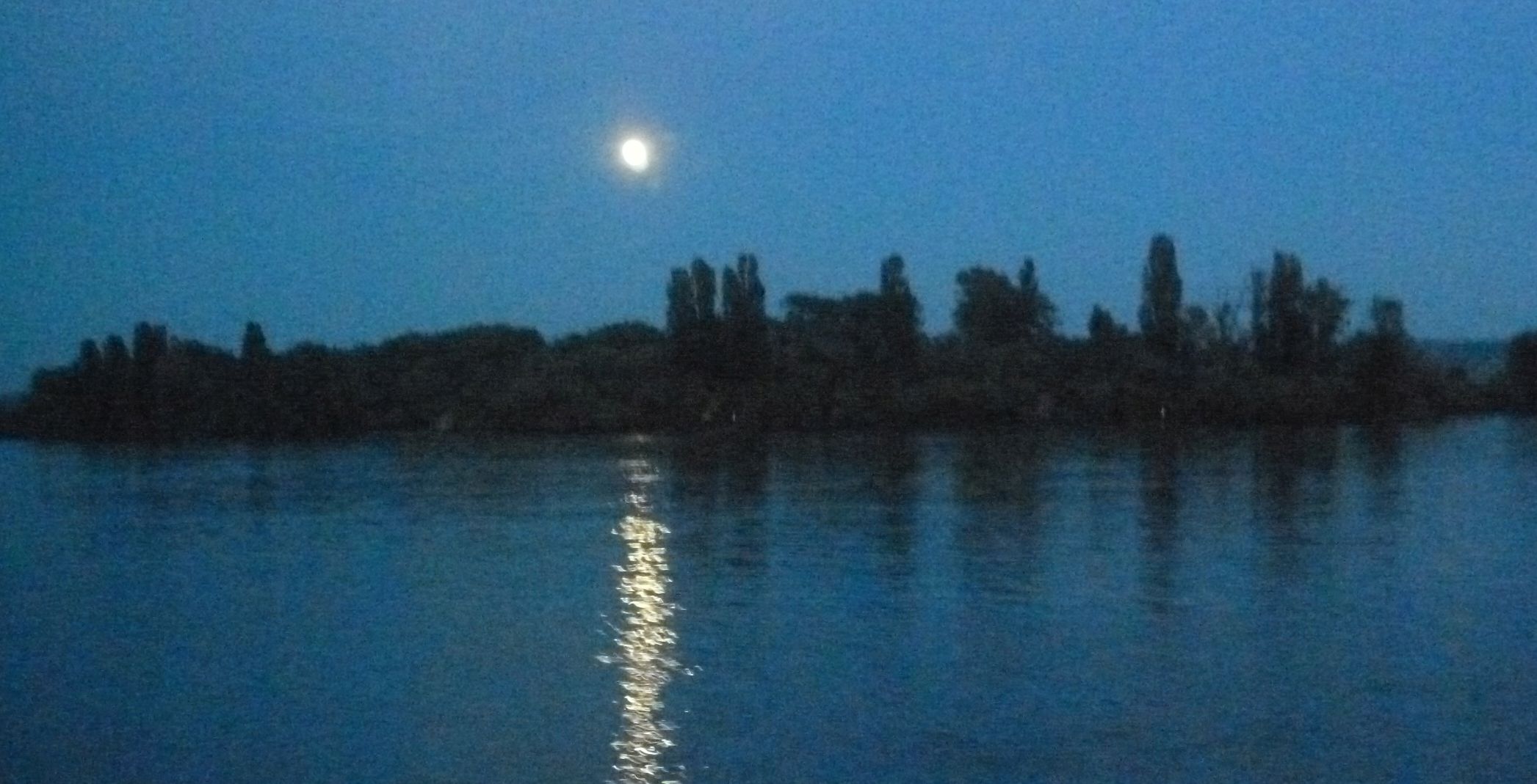 We walked for the ship to a restaurant in Rudesheim for dinner. There was a full moon when we returned to the ship.