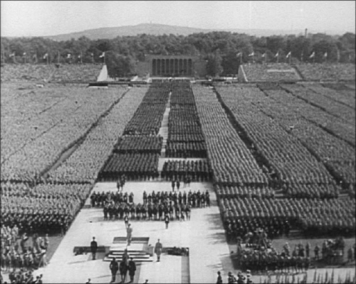 A photo of Hitler leading a delegation of high-ranking Nazis into the Congress Hall.