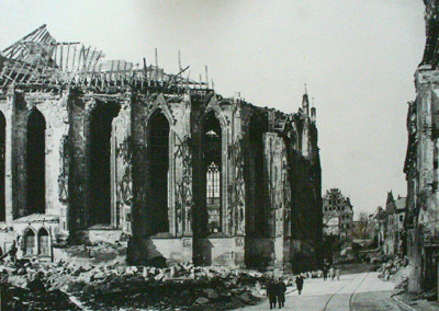 The towers and the major part of the east chancel were destroyed in WWII and have been rebuilt.