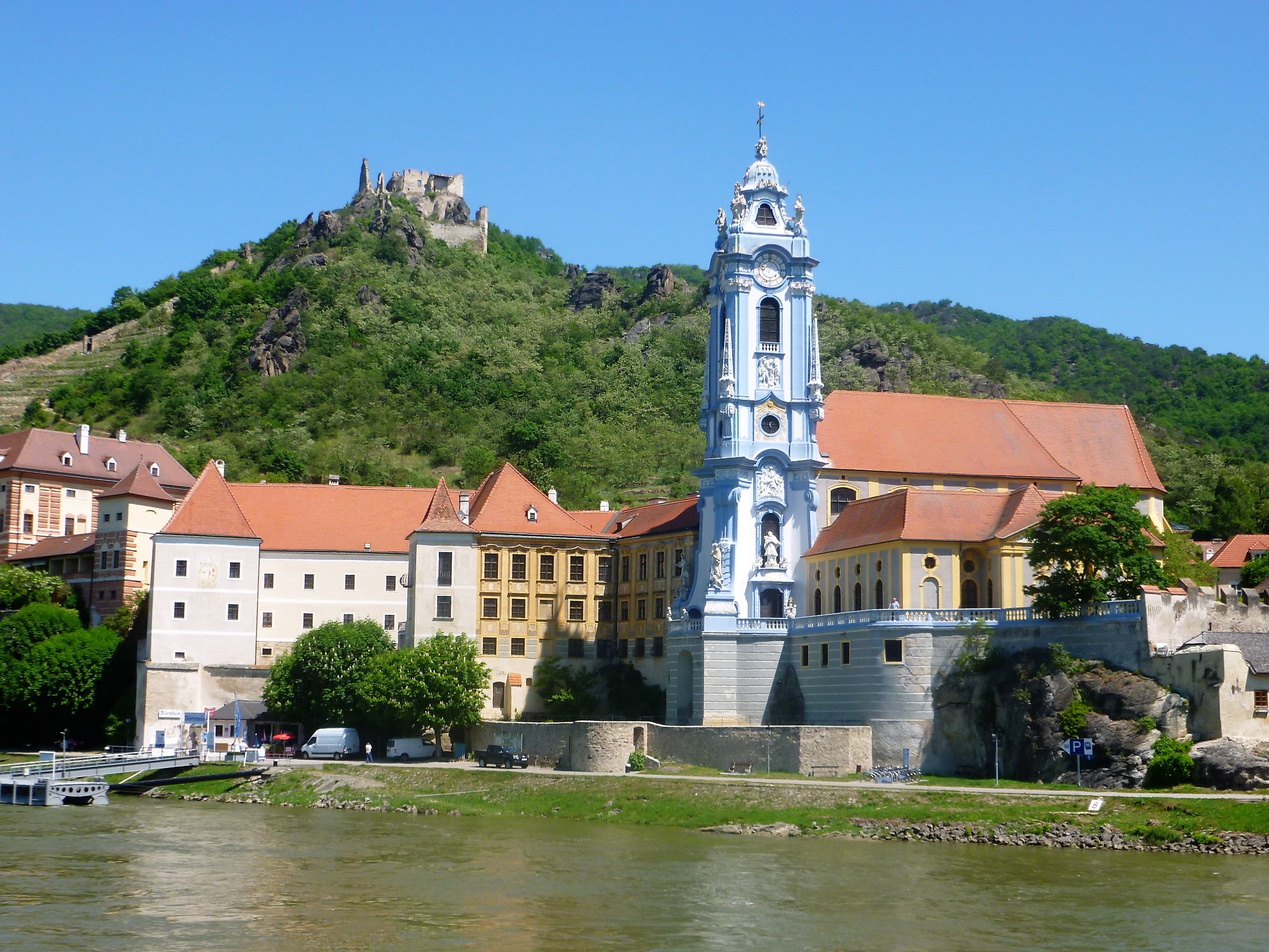 Durnstein is located in the heart of Austria's Wachau wine region. The castle ruin on top of the hill is Kuenriger Castle. Richard the Lionheart was imprisoned here in the 12th Century.