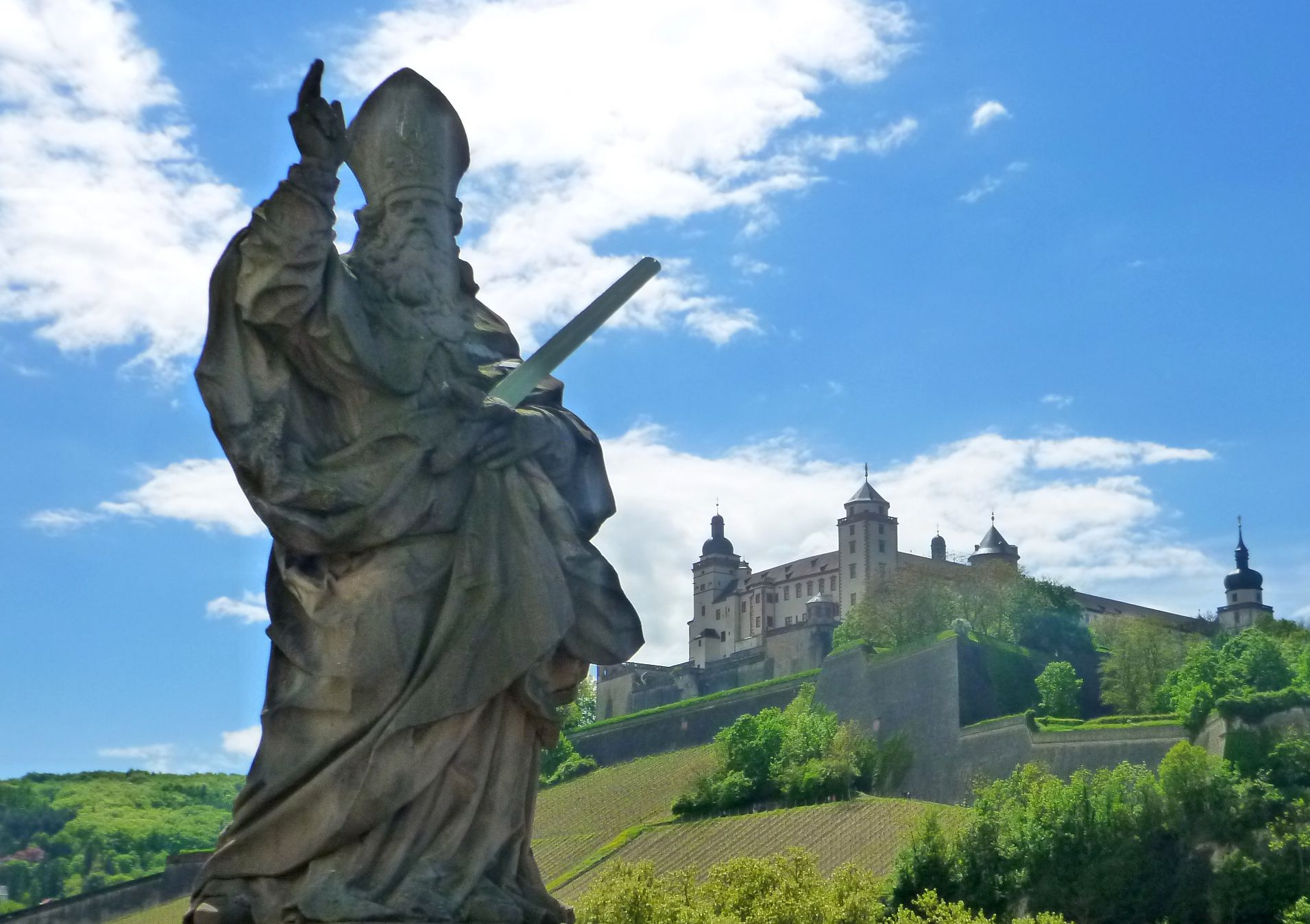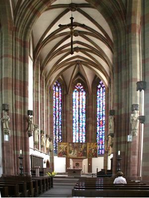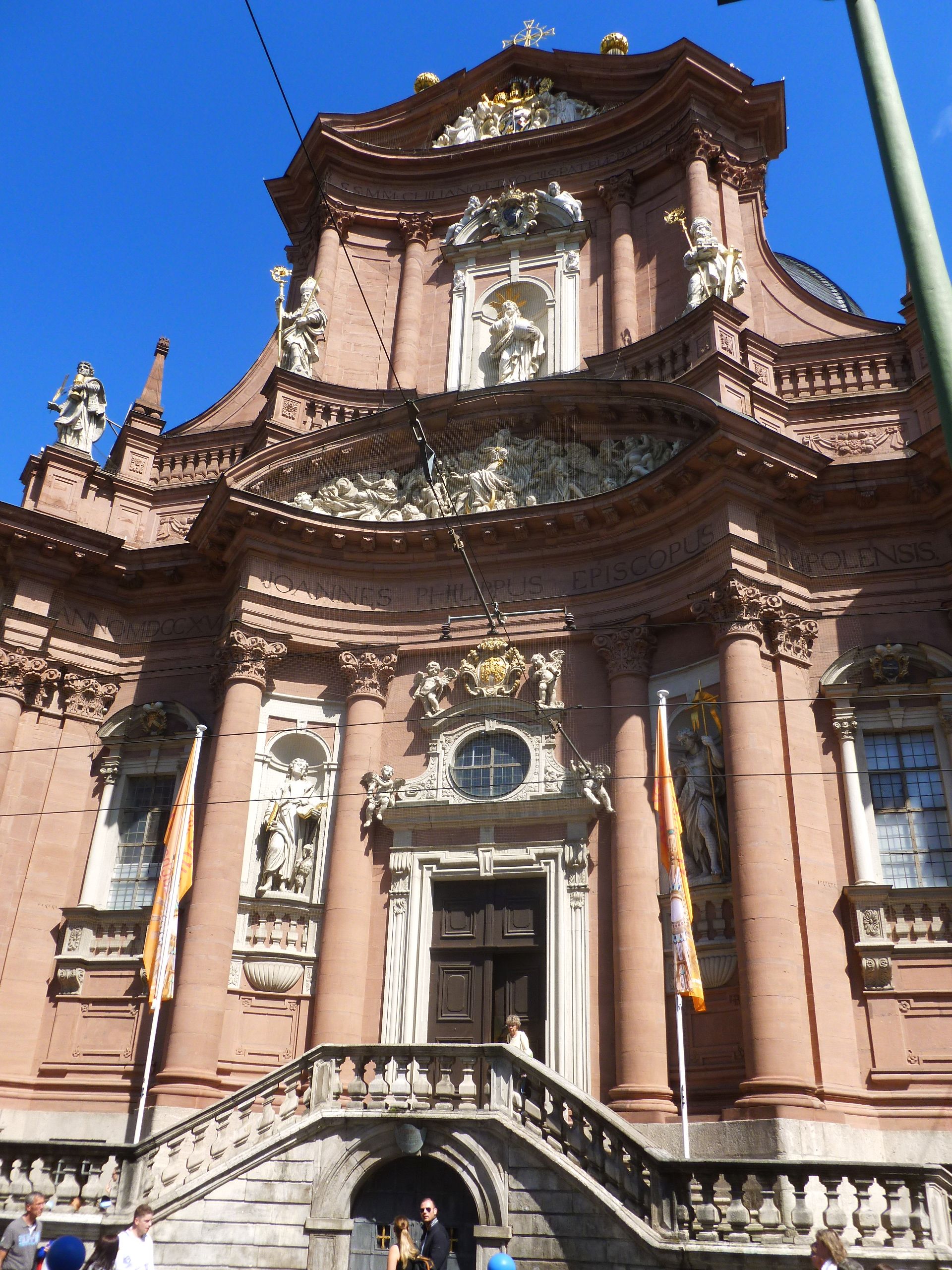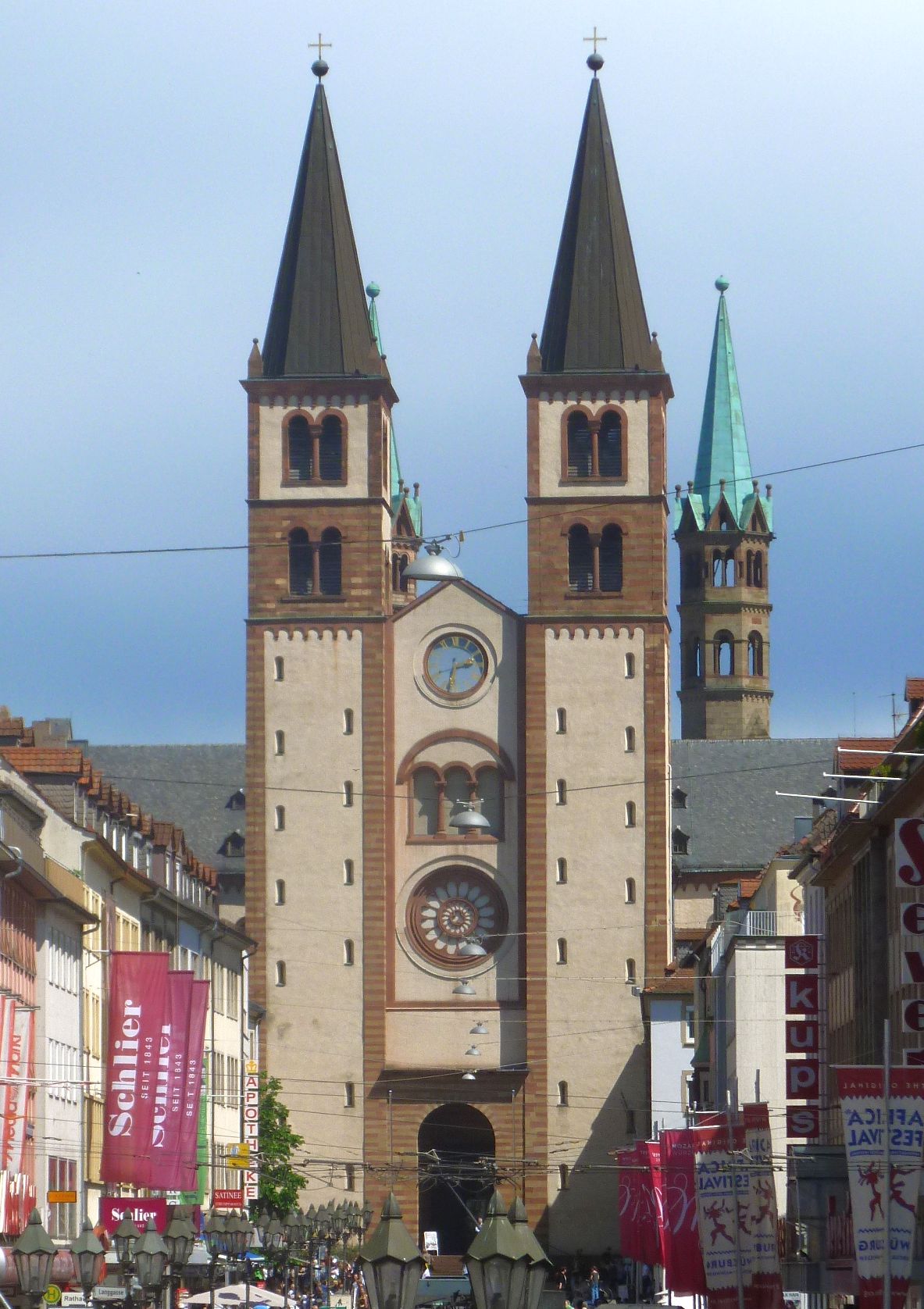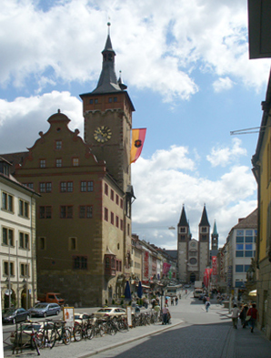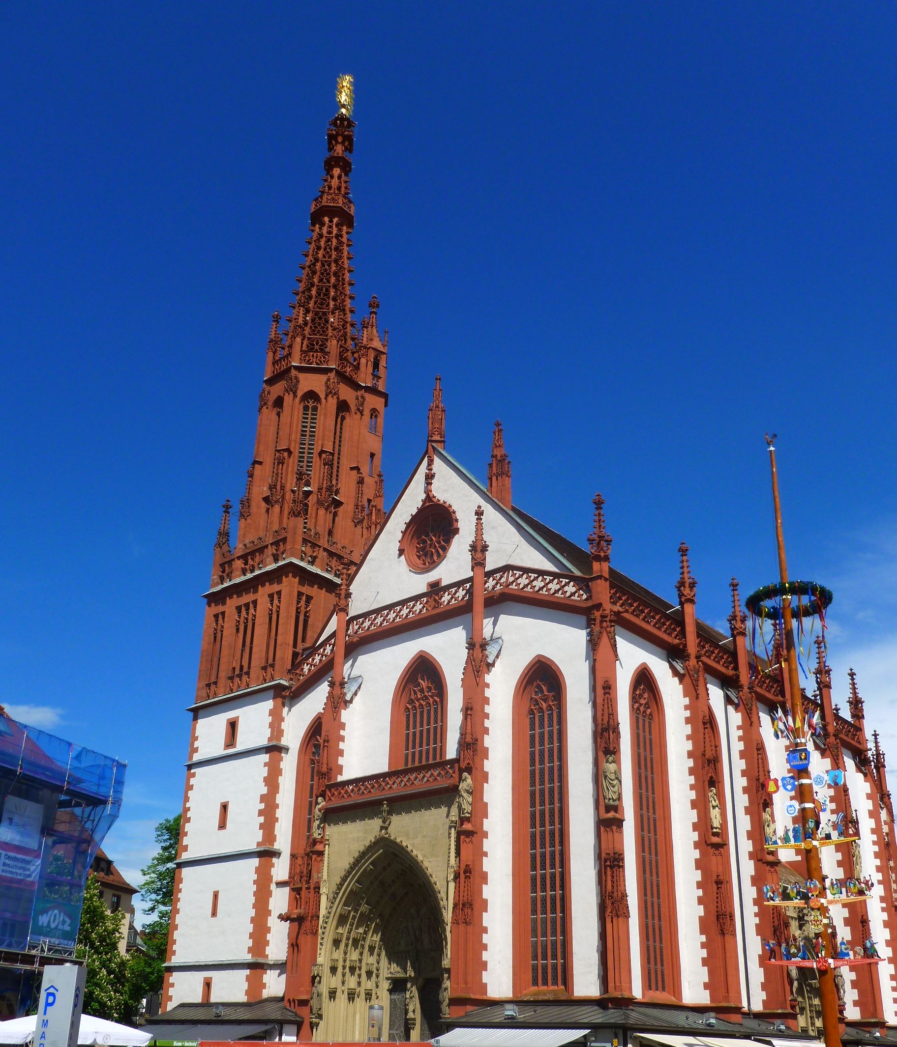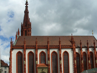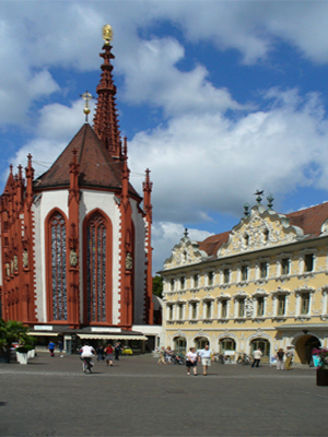 At a nearby marketplace, the Marienkapelle (1377-1479; restored after 1945), the finest Late Gothic building in Würzburg.