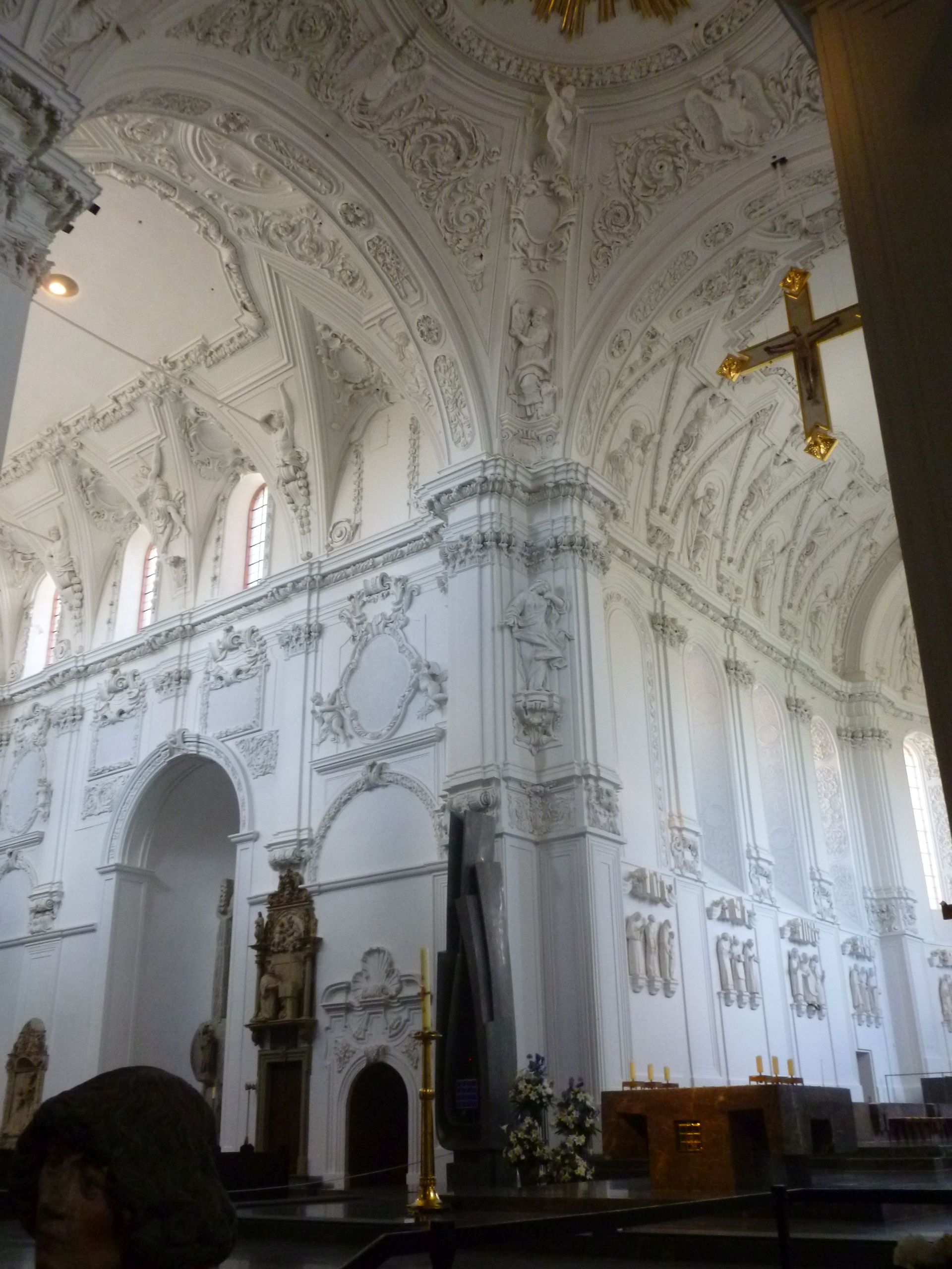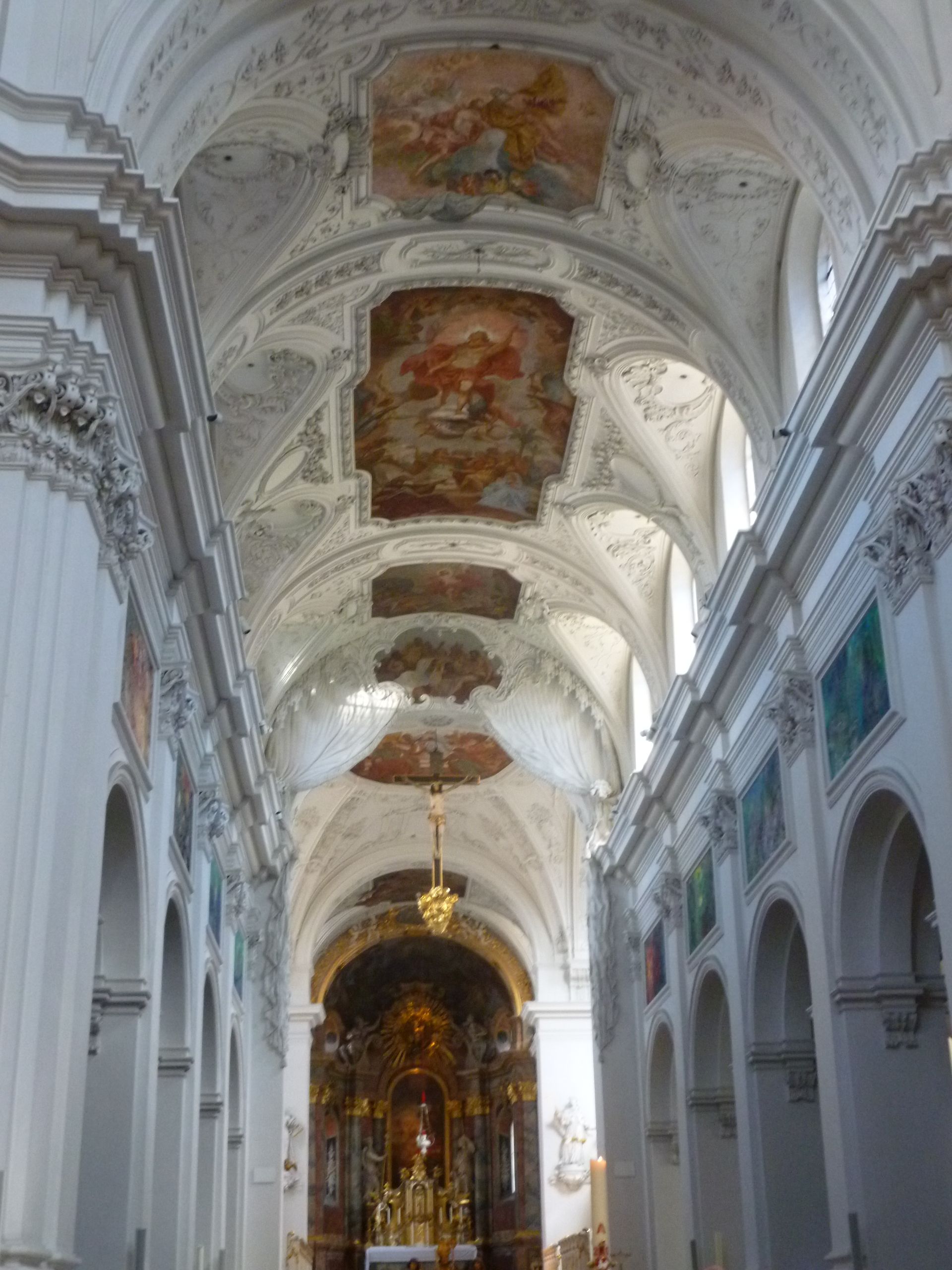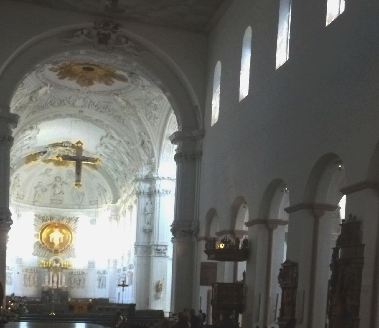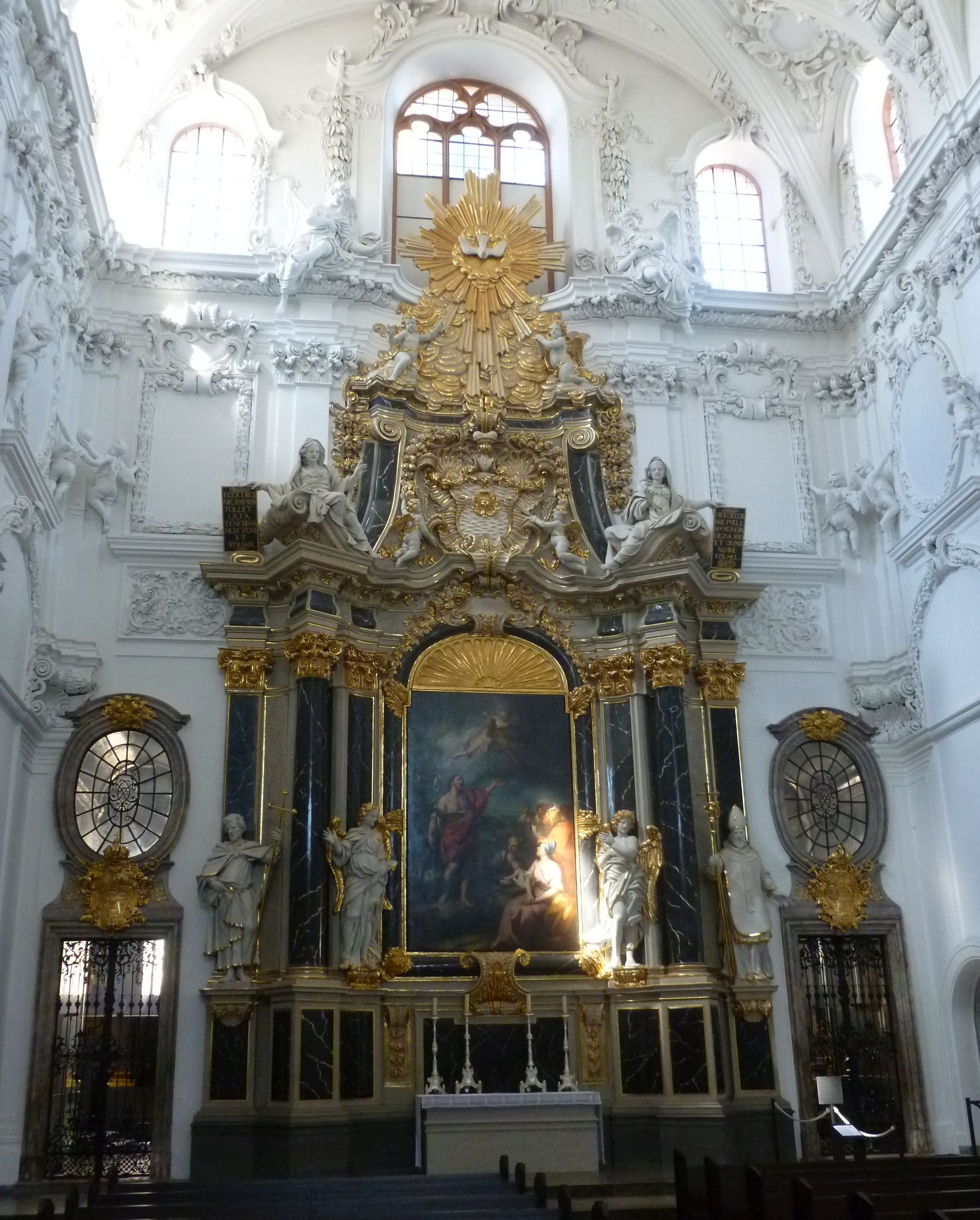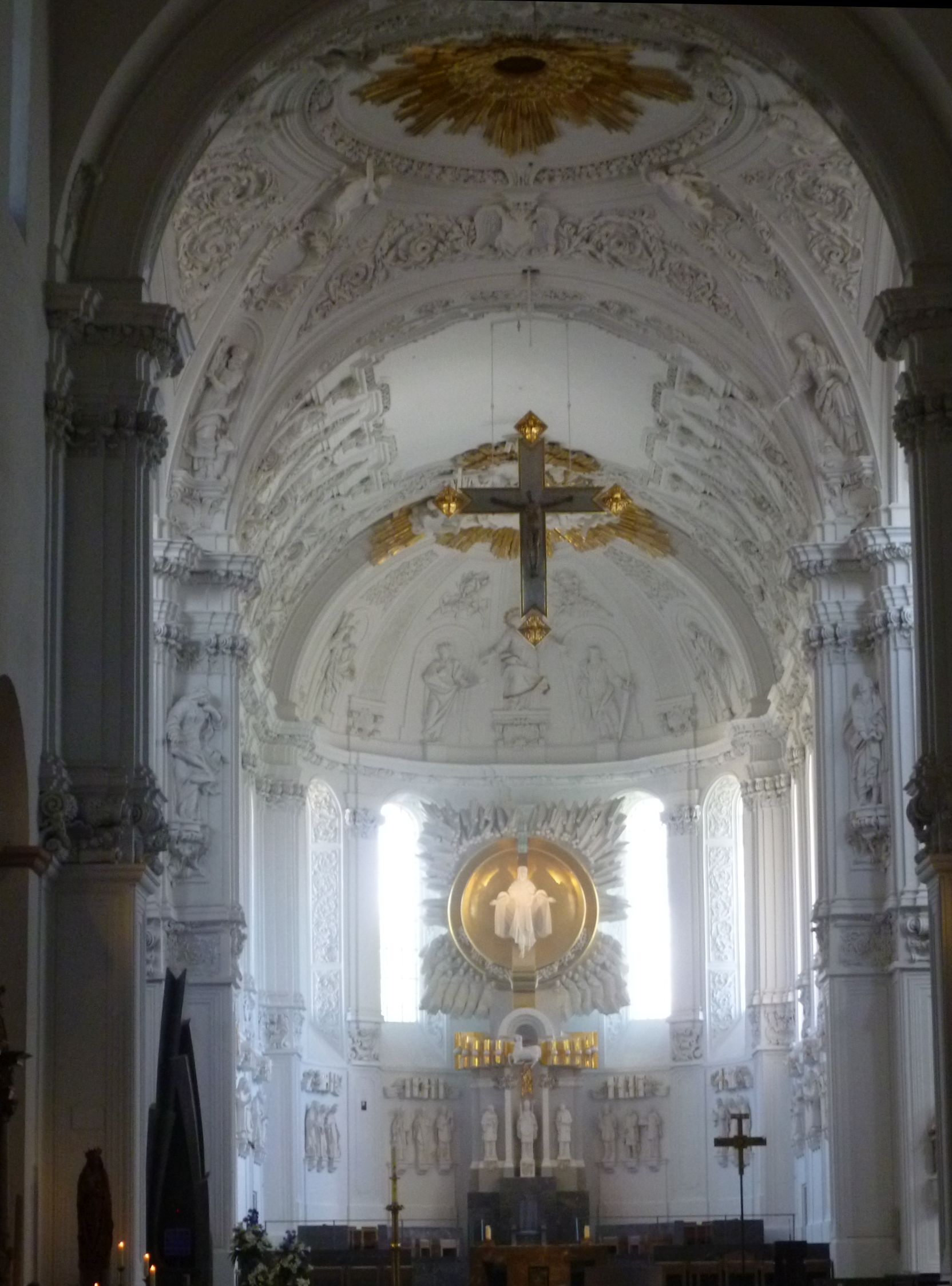 The newest of the three churches in this area is the baroque Neuemunster Basilica. Although a church existed here from 1060, from 1711-1722:, after the demolition of the western chancery, the baroque west building with the dome and the Westfassade was erected by Joseph Greising, and the interior was baroqueized in the following years