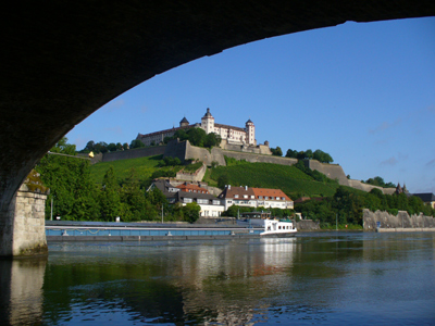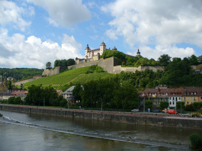 Views of the fortress in the afternoon. The fortress is from 1200. In 1631 the massive walls were built to protect the Marienberg. In 1945 the fortress was almost completely burned out, and its reconstruction was only completed in 1990.