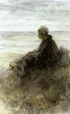 Jozef Israël's watercolor portrait, Schevening Girl on a Dune