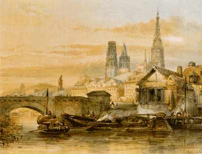 Johannes Bosboom watercolor and ink , View of Rouen, 1839