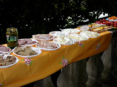 There were pates, sausages and cheeses.