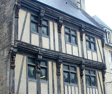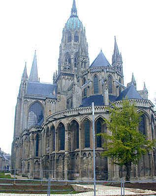 After we saw the tapestry, we had about half an hour to see the large cathedral at Bayeaux. Following are views of the front and back as well as two shots of the stained glass.