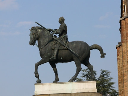 To the side of the church stands the equestrian statue of Gattamelata. Donatello, the talented sculptor of the Early Renaissance, who worked in Padua from 1441 to 1453, created the bronze statue between 1447 and 1453 in honor of Erasmo da Narni. The latter was commander-in-chief of the Venetian army (against Milan) and his diplomatic skill earned him the name of "Gattamelata" (spotted cat).