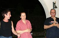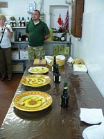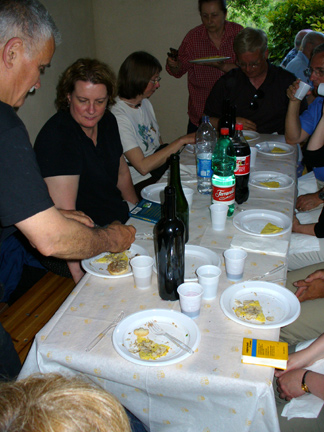Eva had prepared a dinner for us with many types of bruschetta (including one with truffles), a number of cheeses, a pasta dish with pork sausage, one with two kinds of prosciutto, etc, etc. Here Sergio is shaving some truffle on fritata, so we were able to taste the fruits of our "labor."