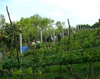 After returning to our hotel in Montone for a rest, we rode a short distance to the home of Sergio and Eva for a truffle hunt. Here the group is walking around a vineyard to the area where we hope to find truffles.