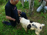 Nappo was right and he receives a treat for finding the truffle Sergio has in his hand.