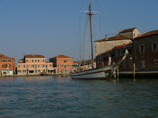 The boat from the airport to the city stopped in Murano.