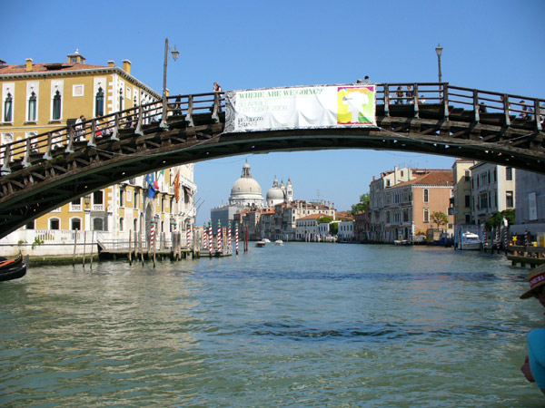 From the Frari Church, we again boarded a vaporetto to go back to St. Mark's Square. We passed under the Accademia Bridge with a water level view of the La Salute Church.