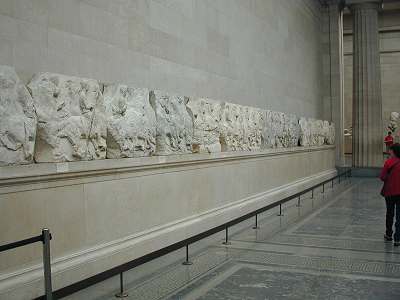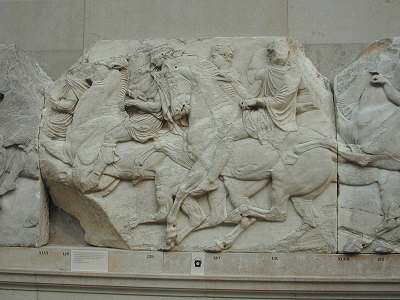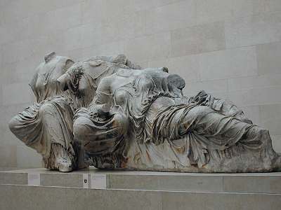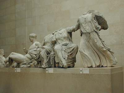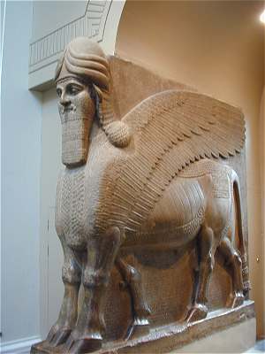 An Assyrian statue of a winged lion with a human head . (C 870 BC)