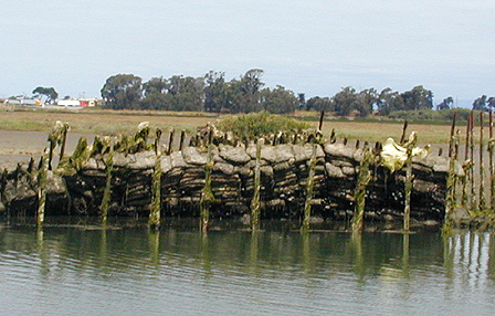 This is part of the remains of a wall built to keep some sea water in a shallow area. The water would then evaporate, leaving the salt to be processed and sold.
