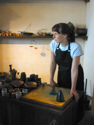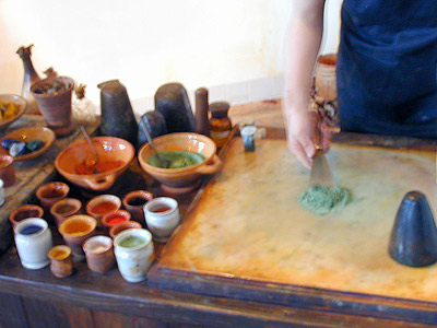 a young lady was demonstrating how paint was mixed in the days of Rembrandt. She started with the proper color mineral.