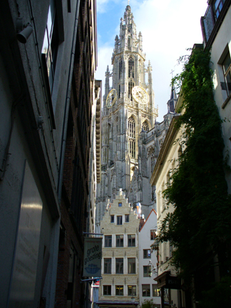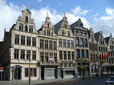 A local guide took us on a walk of the Old Town area of Antwerp. Our first stop was at a 1591 building in an alley. This area is now filled with restaurants.
