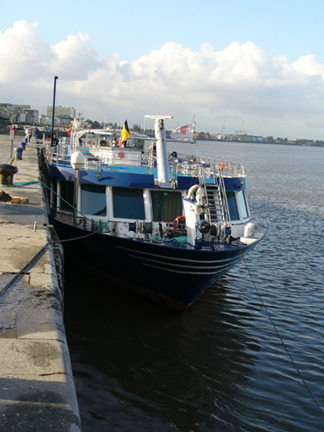 Because the Schelde River is a tidal river with as much as 15 feet difference in level, later in the day the ship was floating much higher and we were able to board at the main deck.