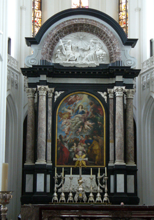 The interior is equally spectacular. The right photo shows the painting behind the altar which is "The Assumption of the Virgin" by Rubens.