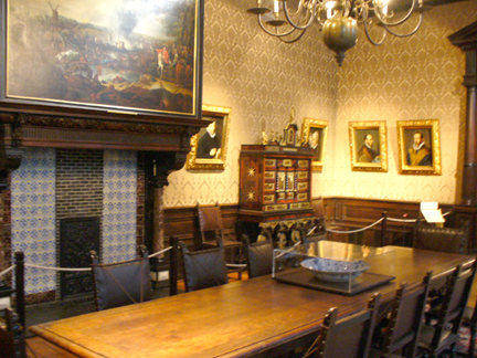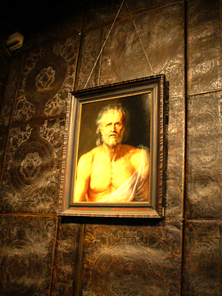 A Rubens painting of Seneca. Note also the leather wallcovering in this room.