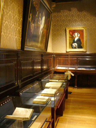 A room with a display of books, some as old as 1480.