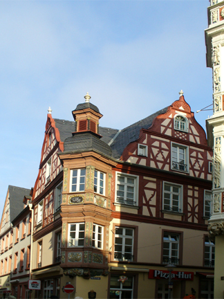 Two of the many half-timbered buildings in the city center.