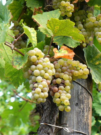 A closeup of some of the grapes. Although it was late in the season, not all the grapes had been picked. Some would be saved until they were frozen and eiswein would be made from them.