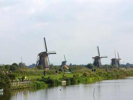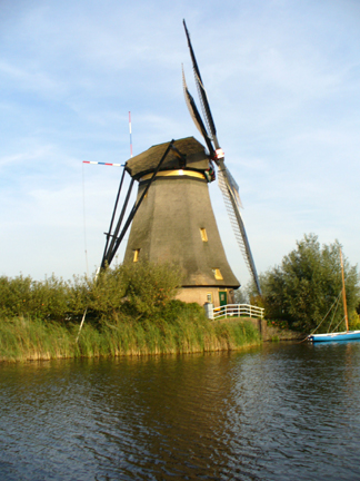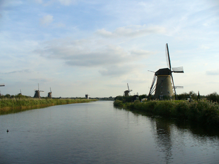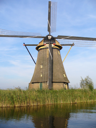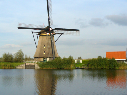 Nowhere in the world you will find as many windmills as near (the Dutch village) Kinderdijk. Around 1740 no less than 19 sturdy mills were built here. They have been well preserved to the present day. The mills drain the excess water from the Alblasserwaard polders - pieces of land below sea-level surrounded by a dike - after which the water is sluiced into the river Lek. The powerful mill sails serve to transmit the force of the wind on to large paddle-wheels which scoop up the water. Nowadays power-driven pumping engines do the job, including one of the largest water screw pumping-station in Europe.