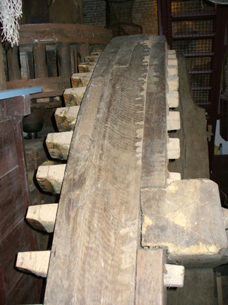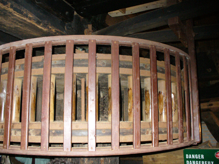 We could climb up into one mill to see some of the gears. This one is attached to the vertical shaft which causes the paddle wheel (or screw) to pump the water.