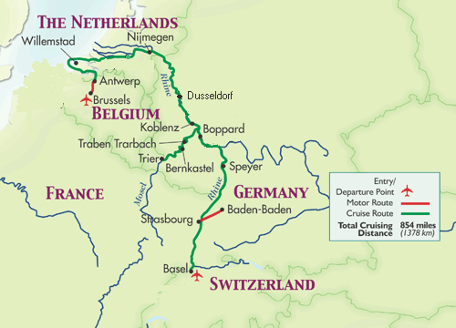 From October 6-20, 2006 a group of 114 people enjoyed a cruise on the Rhine and Mosel rivers on a Grand Circle Cruise. As the map below indicates, the cruise started in Antwerp and ended in Basel.