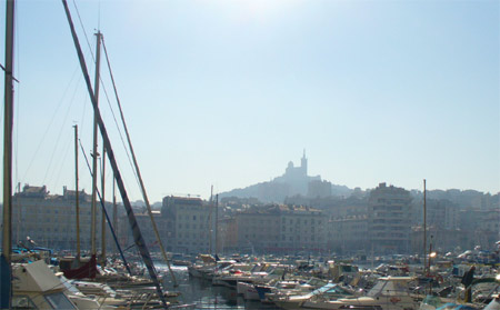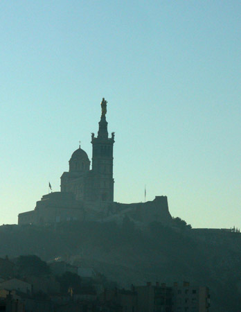 From a number of spots that morning we could see the Notre Dame de la Garde in the haze, visible across much of the city and from miles out at sea.