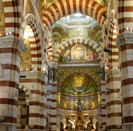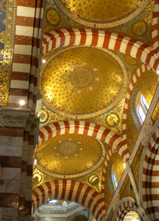 Now we have driven up the hill to see this Romanesque-Byzantine basilica, built in the 1850's on the site of a 13th century chapel, also dedicated to Our Lady of the Guard and filled with the votive tablets of sailors who returned safely to port.