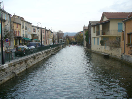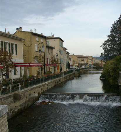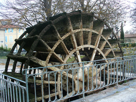 This old waterwheel is a reminder of times past, beginning in the 1200's when waterwheels were first used for grinding flour and later for paper, textile, silk and woolen mills. At its peak, there were as many as 70 such wheels. In the 1800's the town competed with Avignon as the textile center of Provence.