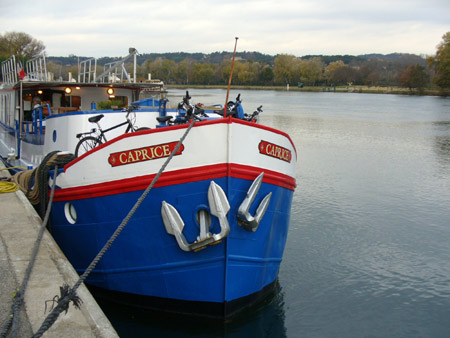It was late in the day when we arrived at the Caprice, which was to be our home for the next seven days. The crew greeted us with a drink and some pastries. We were shown to our 66 square foot (11'x6') cabins and rested a bit before our first four course dinner aboard, onion soup, salmon, a cheese plate and creme brulee. It was an excellent meal, as were the meals which followed for the next six days.