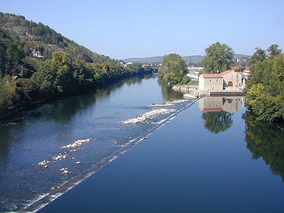 After the pre-historic paintings at Pech Merle, we rode the bus to Cahors to see the Pont Valentré, a fortified bridge built in 1308 to keep the English out of Cahors.