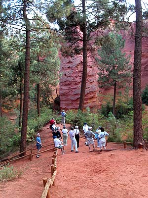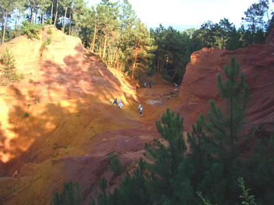 After a trip to Isle sur la Sorgue the next day, we returned to Roussillon and Patrick took us on a walk in the quarry where the ochre was mined from Roman times until the 1950's when synthetic colors became available.