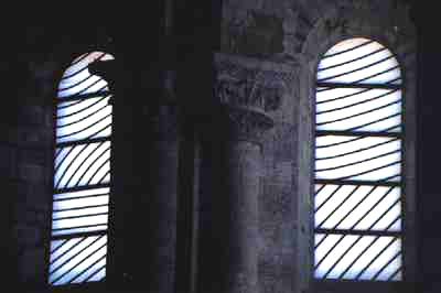 In contrast, the interior had unusual stained glass made by the Fench abstract painter, Pierre Relieve, in 1987 in the 104 windows of the abbey.