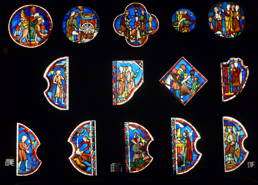 We began the day with a visit to the Cluny Museum. The first room of interest for us was a room of stained glass, beautifully displayed. Some of them were given to the Cluny Museum from Sainte Chapelle which they had removed when they renovated some of their windows.