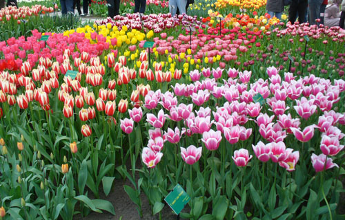 In this pavilion were many beds of tulips of different varieties and colors.
