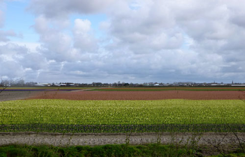 On the bus back to Amsterdam we saw a number of tulip fields, but they were also late blooming this year.
