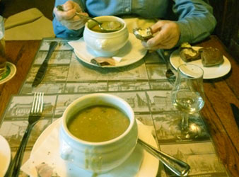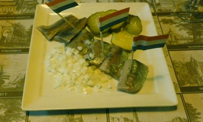 We had wanted to eat dinner in another Dutch restaurant, but it was closed. So we returned to the Haeseje Claes for a lighter meal of pea soup, salad and Dutch croquettes. I also had to try the herring, a favorite Dutch dish.
