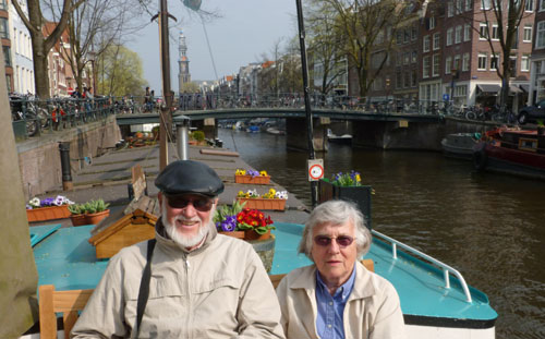 We had to have a typical tourist photo taken here on the deck of the houseboat. Next we visited the Oude Kerk, built in the 14th century. Additions were made in the 15th century so it was then close to its present size.