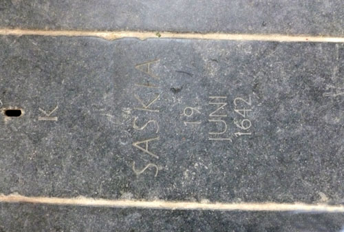 We found the gravestone for Saskia, the wife of the artist Rembrandt.
