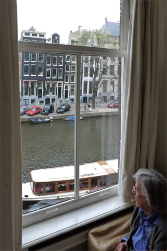 After uneventful flights we arrived in Amsterdam about 9 a.m. and soon found the apartment on the Singel canal. Elizabeth was quickly seated at the window looking out at the canal.