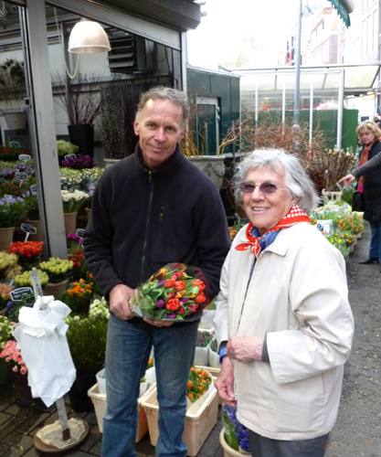 Ater the overnight flight we wanted to keep moving, so we walked to the flower market. Elizabeth admired the amaryllis plants.