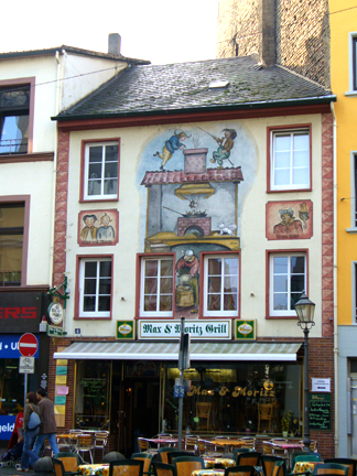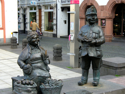 The citizens of Koblenz show a sense of humor in a number of statues in the city. Here is a policeman with a woman selling vegetables.