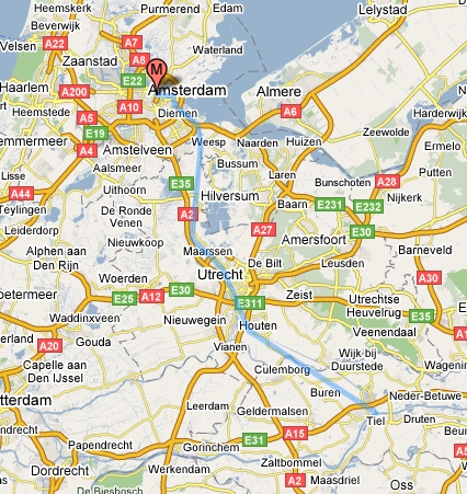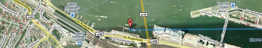 The larger map can be scrolled to the point of spotting a sister ship docked where we were in the Amsterdam harbor, as we see in the header above.