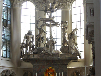 The high altar is modern (1853) and represents the stoning of Stephen, the first Christian martyr.